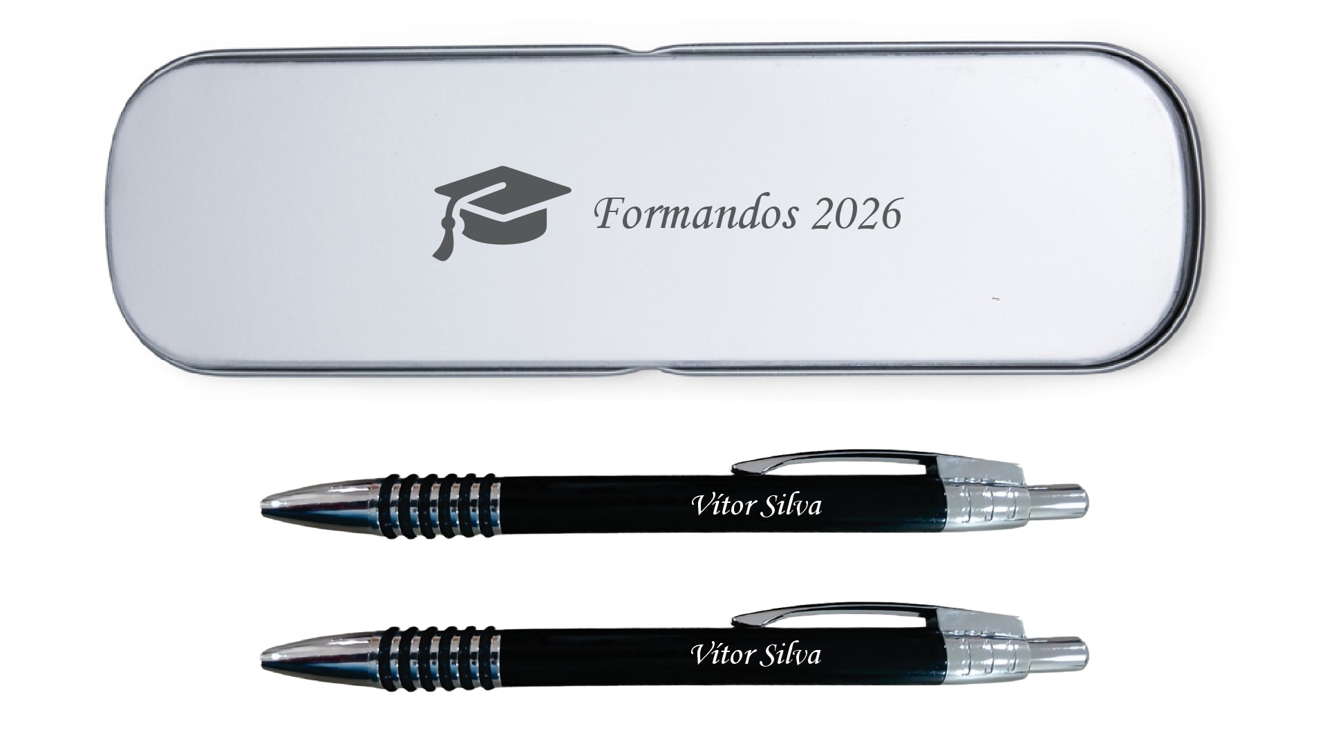 - Kit caneta e lapiseira com estojo metálico personalizados