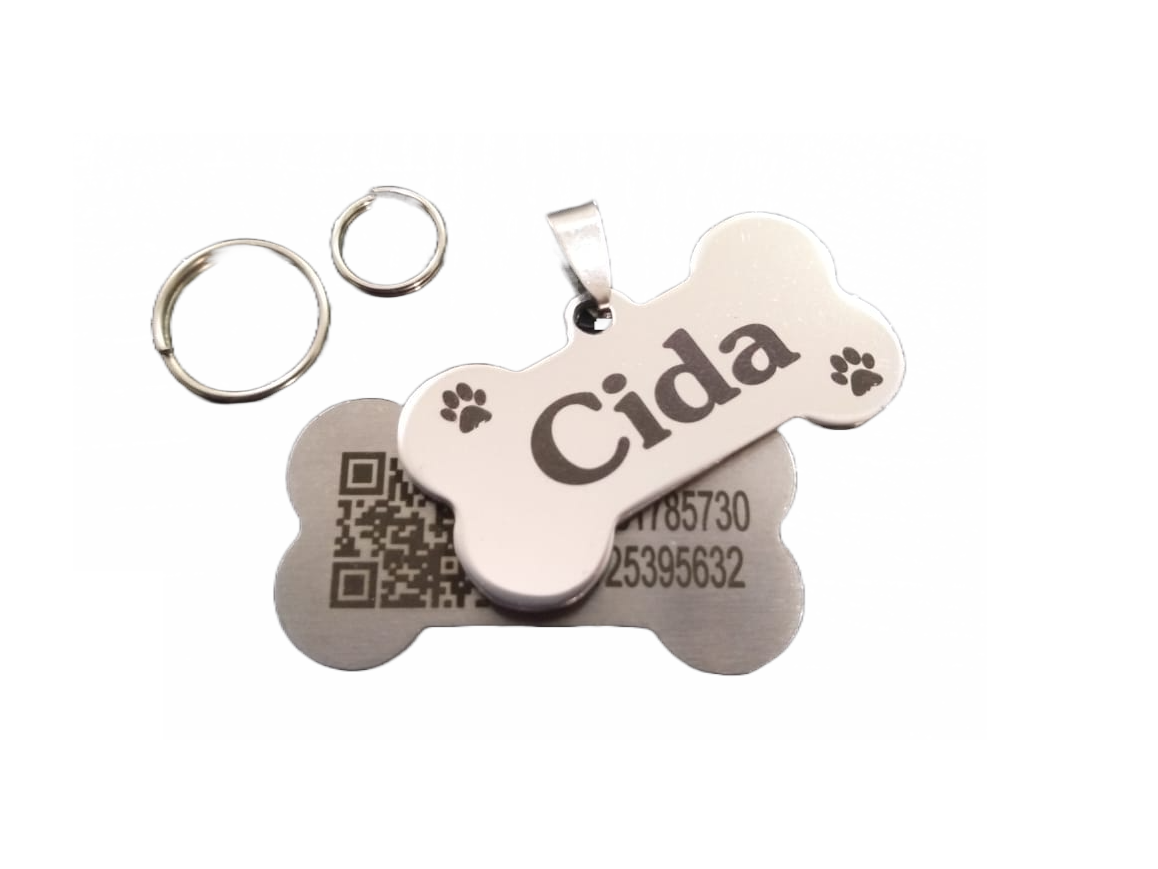 Gravamos o nome na frente e o nome do dono e telefone no verso.